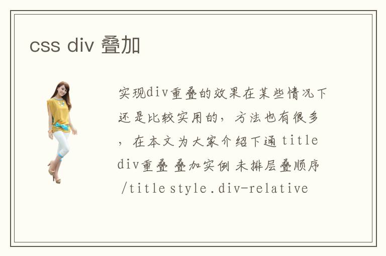 CSS中的疊加分為以下三種 1、上下疊加 CSS部分 #div1 { width 200px ; height 50px ; margin-bottom 30px ; background #ffff00 ;} #div2 { width 200px ; height 50px ; margin