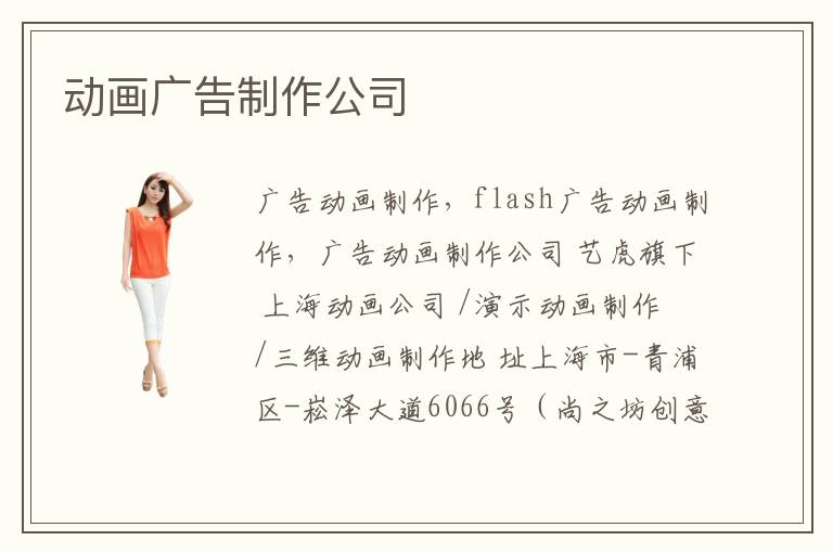 廣告動畫制作,flash廣告動畫制作,廣告動畫制作公司 藝虎旗下 上海動畫公司 /演示動畫制作 /三維動畫制作地 址上海市-青浦區(qū)-崧澤大道6066號(尚之坊創(chuàng)意產(chǎn)業(yè)園)3號樓M