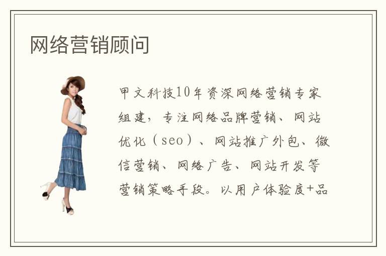 甲文科技10年資深網(wǎng)絡(luò)營(yíng)銷(xiāo)專(zhuān)家組建,專(zhuān)注網(wǎng)絡(luò)品牌營(yíng)銷(xiāo)、網(wǎng)站優(yōu)化(seo)、網(wǎng)站推廣外包、微信營(yíng)銷(xiāo)、網(wǎng)絡(luò)廣告、網(wǎng)站開(kāi)發(fā)等營(yíng)銷(xiāo)策略手段。以用戶體驗(yàn)度+品牌+營(yíng)銷(xiāo)策略+視
