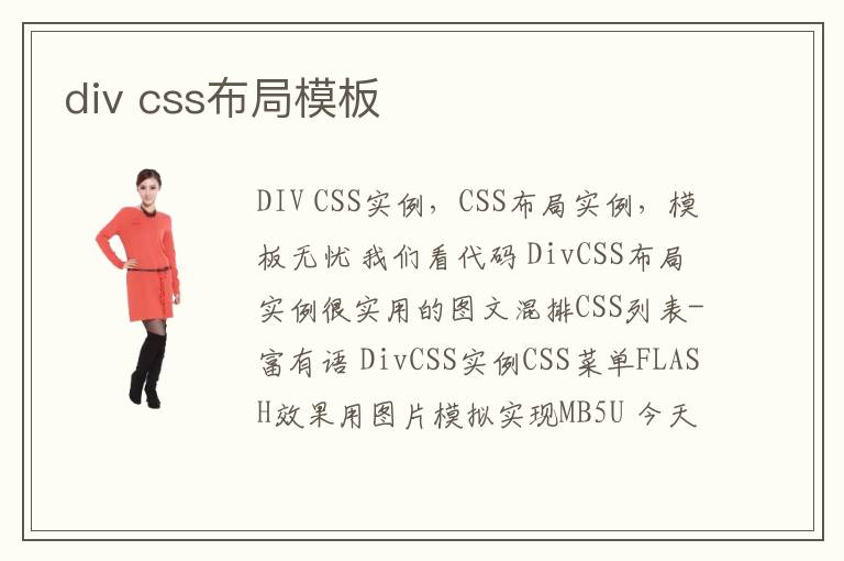 DIV CSS實(shí)例,CSS布局實(shí)例,模板無憂 我們看代碼 DivCSS布局實(shí)例很實(shí)用的圖文混排CSS列表-富有語(yǔ) DivCSS實(shí)例CSS菜單FLASH效果用圖片模擬實(shí)現(xiàn)MB5U 今天有人