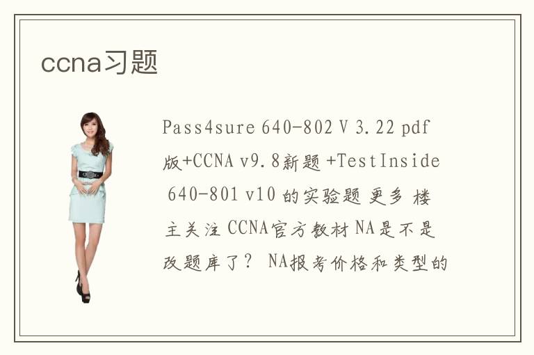 Pass4sure 640-802 V 3.22 pdf版+CCNA v9.8新題 +TestInside 640-801 v10 的實驗題 更多 樓主關注 CCNA官方教材 NA是不是改題庫了? NA報考價格和類型的問題 想問一下,校