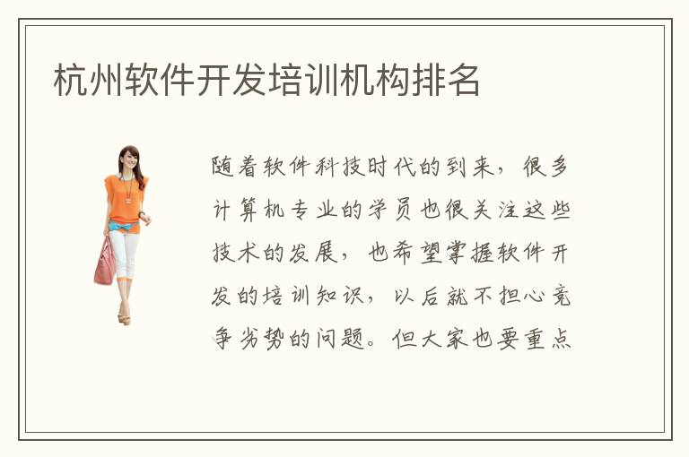 隨著軟件科技時代的到來,很多計算機專業(yè)的學(xué)員也很關(guān)注這些技術(shù)的發(fā)展,也希望掌握軟件開發(fā)的培訓(xùn)知識,以后就不擔(dān)心競爭劣勢的問題。但大家也要重點了解杭州軟件開發(fā)培訓(xùn)機構(gòu)排名,看一下哪些軟件開發(fā)機構(gòu)可以達到自己的學(xué)習(xí)目標。許多學(xué)生在計算機學(xué)習(xí)的時候,都會考慮軟件開發(fā)的課程,也希望報名輔導(dǎo)班收獲更高的成績。軟件開發(fā)培訓(xùn)機構(gòu)成績,其實大多數(shù)都是能夠保障,但也要看每個機構(gòu)的技術(shù)水平以及學(xué)習(xí)的時間、學(xué)習(xí)進度安排等等。軟件開發(fā)培訓(xùn)零基礎(chǔ)學(xué)習(xí)方法,主要就是從入門級的課程開始,比如有些學(xué)生才剛剛接觸軟件開發(fā)的應(yīng)用,對于任何應(yīng)用的建設(shè)理論知識都是一張白紙,根本就沒有任何經(jīng)驗,因此要從簡單性的教學(xué)內(nèi)容一步一步提高難度,將在以后學(xué)習(xí)的時候才會有明顯的進步。