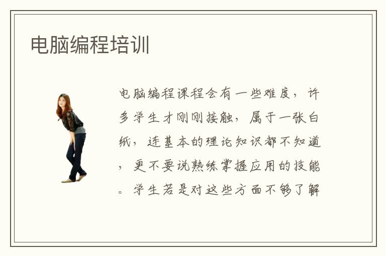 電腦編程課程會有一些難度,許多學(xué)生才剛剛接觸,屬于一張白紙,連基本的理論知識都不知道,更不要說熟練掌握應(yīng)用的技能。學(xué)生若是對這些方面不夠了解,希望有更多突破,一方面可以投入更多時間,通過自學(xué)的方法,熟練運(yùn)用各種知識內(nèi)容。另外,也可以參與電腦編程培訓(xùn)課程,提高學(xué)習(xí)效率,制定明確的學(xué)習(xí)規(guī)劃,發(fā)揮更理想的學(xué)習(xí)成果。電腦編程培訓(xùn)能提高就業(yè)率嗎。電腦編程培訓(xùn)班當(dāng)然可以提高就業(yè)率,因?yàn)榕嘤?xùn)班很重視學(xué)生的工作技能,在不同階段的設(shè)置對應(yīng)性的輔導(dǎo)課程,使學(xué)生的操作能力和應(yīng)用水準(zhǔn)擁有更大的突破。電腦編程網(wǎng)絡(luò)教學(xué)確實(shí)對很多學(xué)生都是非常重要的,因?yàn)榭梢怨?jié)約很多學(xué)習(xí)時間,大家可以靈活安排,并不用擔(dān)心時間不足或效率不高等等情況。