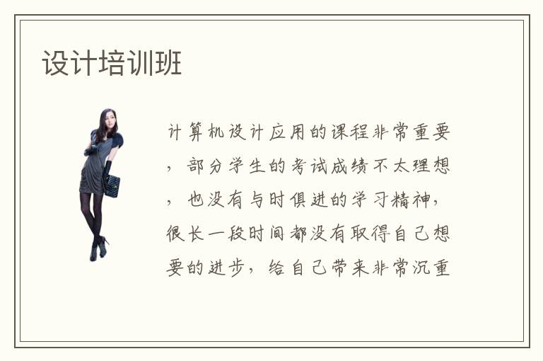 計算機設計應用的課程非常重要,部分學生的考試成績不太理想,也沒有與時俱進的學習精神,很長一段時間都沒有取得自己想要的進步,給自己帶來非常沉重的負擔和壓力。專業(yè)老師往往可以提供多種教學的方法,補充重要的知識內(nèi)容,挖掘自身的優(yōu)勢,從而取得更好的學習成績。要是學生想要參與設計培訓班的課程,不妨先對比一下設計培訓班成果、教育能力以及學習效果。設計培訓班多不多人,設計培訓班的報名人數(shù)很多,采用多方位的教學課程,學生可以掌握很多重要的應用知識和理論知識,滿足自己的學習體驗。不少學生希望在設計輔導班的幫助下,優(yōu)化自身的能力。而補習班的老師會進行細致的檢測,關注學生的狀態(tài)以及動力、原有的基礎等等,然后選擇對應性的課程。