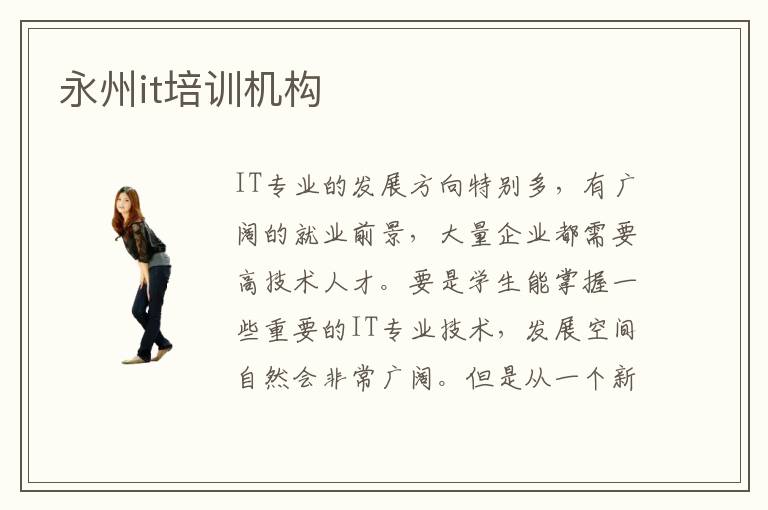 IT專業(yè)的發(fā)展方向特別多,有廣闊的就業(yè)前景,大量企業(yè)都需要高技術(shù)人才。要是學生能掌握一些重要的IT專業(yè)技術(shù),發(fā)展空間自然會非常廣闊。但是從一個新手,到行業(yè)內(nèi)的佼佼者,其實是非常漫長的過程,學生要找到合適的專業(yè)學習方法,努力提高個人的技術(shù)實力,比如報名永州it培訓機構(gòu)。it培訓機構(gòu)小班教學特別重要,因為老師與同學的交流機會和時間更多,老師可以深入理解學生的問題,學生自然也能得到更多進步。it培訓機構(gòu)老師水平如何,IT培訓機構(gòu)有很多專業(yè)的輔導方法,為學生制定科學的輔導內(nèi)容,快速解決學生IT應用的難題。不少學生在計算機應用的時候都缺乏專業(yè)的訓練,老師也沒有認真講解過這些內(nèi)容,在學生有時候會感覺到長期停留在原地,不知道怎么樣進步。