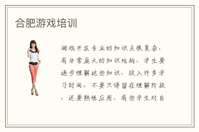 游戲開發(fā)專業(yè)的知識點很復雜,有非常龐大的知識結構,學生要逐步理解這些知識,投入許多學習時間,不要只停留在理解階段,還要熟練應用。有些學生對自己的能力不是很滿意,學習進度太慢,跟不上專業(yè)老師的上課節(jié)奏,不得不考慮合肥游戲培訓課程,得到更多老師的直接幫助和輔導。游戲培訓經(jīng)驗多嗎,游戲培訓機構的教學經(jīng)驗應該是比較豐富的,首先在于學校可制定完善教學體系,不同的學生都可以獲得對應性的游戲專業(yè)輔導方案,學習效果更顯著。游戲培訓水準相當優(yōu)越,老師一般情況下都會制定多種輔導課程,為學生帶來不同階段的訓練。只要學生在某些階段的能力不夠強,缺乏發(fā)展方向,不懂得基礎應用,老師都會進行詳細講解和分析,為大家?guī)砀嘤螒驅I(yè)的應用訓練。