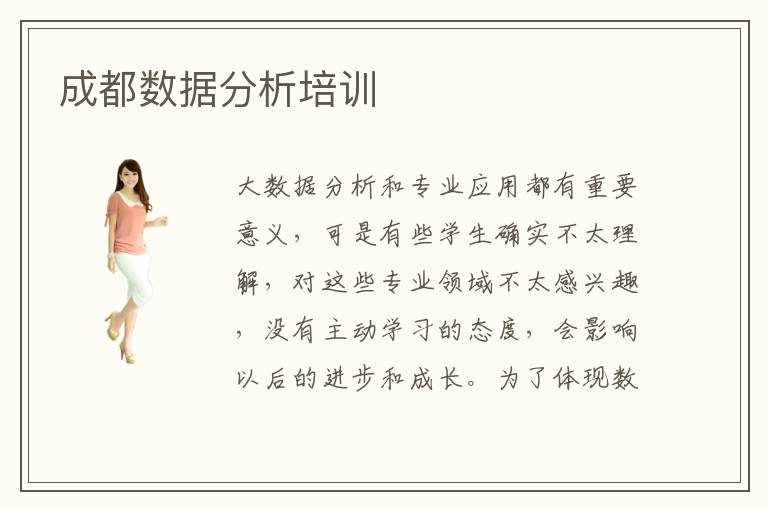 大數(shù)據(jù)分析和專業(yè)應(yīng)用都有重要意義,可是有些學(xué)生確實(shí)不太理解,對這些專業(yè)領(lǐng)域不太感興趣,沒有主動學(xué)習(xí)的態(tài)度,會影響以后的進(jìn)步和成長。為了體現(xiàn)數(shù)據(jù)分析的專業(yè)課程優(yōu)勢,學(xué)生要努力突破,掌握一些基礎(chǔ)應(yīng)用技能,然后一步一步進(jìn)行優(yōu)化。當(dāng)然也有部分學(xué)員覺得學(xué)習(xí)數(shù)據(jù)分析課程的過程太漫長,自學(xué)的效果不夠理想,不得不考慮成都數(shù)據(jù)分析培訓(xùn)。數(shù)據(jù)分析培訓(xùn)任務(wù)難嗎,數(shù)據(jù)分析輔導(dǎo)機(jī)構(gòu)的任務(wù)不難,很多學(xué)生會盡可能在幾個(gè)月之內(nèi)熟練運(yùn)用和掌握,學(xué)習(xí)效果相當(dāng)讓人滿意,獲得優(yōu)越的數(shù)據(jù)分析培訓(xùn)成績。其實(shí)有一些學(xué)生對自己的數(shù)據(jù)分析學(xué)習(xí)效果感到失望,總是覺得不如其他成績優(yōu)秀的同學(xué),其實(shí)經(jīng)過輔導(dǎo)班的數(shù)據(jù)分析教學(xué)和系統(tǒng)訓(xùn)練后,學(xué)習(xí)成果會快速得到保障。