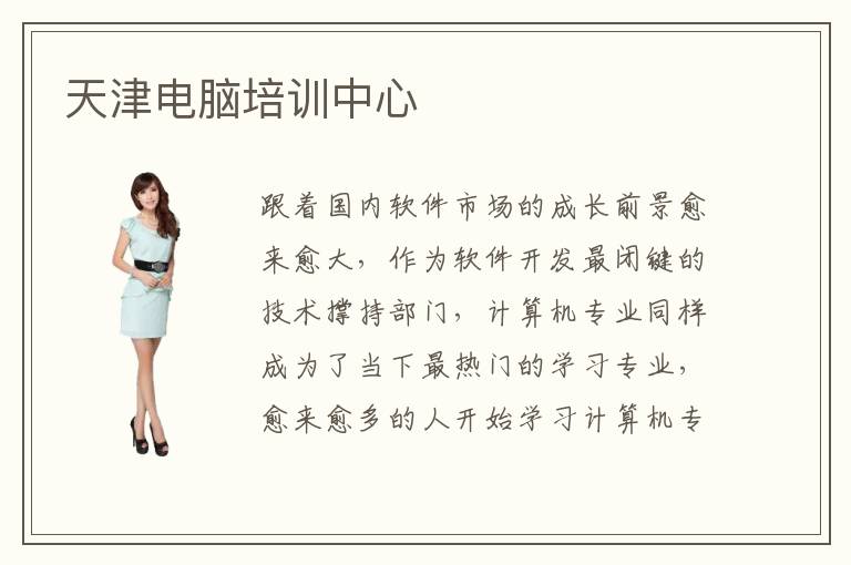 跟著國內(nèi)軟件市場的成長前景愈來愈大,作為軟件開發(fā)最閉鍵的技術(shù)撐持部門,計算機專業(yè)同樣成為了當下最熱門的學習專業(yè),愈來愈多的人開始學習計算機專業(yè)。天津電腦培訓中心以就業(yè)為本,為國內(nèi)計算機專業(yè)培育多量高端人材,重視實踐與實際的連系講授,包管學生基礎學踏實的基礎上,重視實踐操縱才能的培育,脹勵學生介入到與企業(yè)的項眼設計中去。天津電腦培訓電腦培訓中心推薦電腦學校