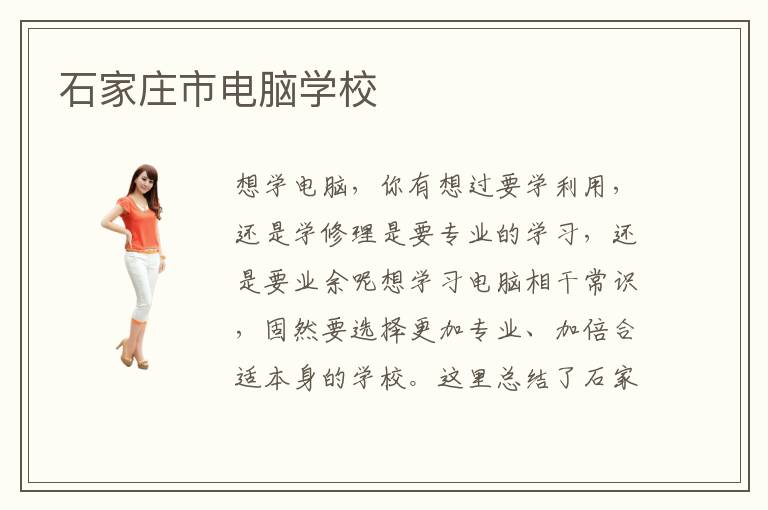 想學(xué)電腦,你有想過(guò)要學(xué)利用,還是學(xué)修理是要專(zhuān)業(yè)的學(xué)習(xí),還是要業(yè)余呢想學(xué)習(xí)電腦相干常識(shí),固然要選擇更加專(zhuān)業(yè)、加倍合適本身的學(xué)校。這里總結(jié)了石家莊都有哪些電腦學(xué)校,并對(duì)各個(gè)學(xué)校的情況停止了簡(jiǎn)單的介紹,但愿能夠讓您領(lǐng)會(huì)到更多的學(xué)校情況。同時(shí),我們對(duì)分歧學(xué)校的課程安排也有著細(xì)致的介紹,但愿您能按照我們的介紹選擇一所課程恰當(dāng)?shù)膶W(xué)校,走上一條您想走的人活路。石家莊市電腦學(xué)校推薦電腦學(xué)校