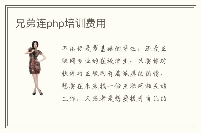 不論你是零基礎(chǔ)的學(xué)生,還是互聯(lián)網(wǎng)專業(yè)的在校學(xué)生,只要你對(duì)軟件對(duì)互聯(lián)網(wǎng)有著濃厚的熱情,想要在未來(lái)找一份互聯(lián)網(wǎng)相關(guān)的工作,又或者是想要提升自己的技術(shù),都可以來(lái)北京兄弟連互聯(lián)網(wǎng)培訓(xùn)機(jī)構(gòu)學(xué)習(xí)。兄弟連是一家致力于培養(yǎng)國(guó)內(nèi)it人才的教育機(jī)構(gòu),一直是我國(guó)教育的領(lǐng)先品牌,與數(shù)百家名企有合作,讓學(xué)員的就業(yè)有了保障。那么,兄弟連php培訓(xùn)費(fèi)用是多少呢?