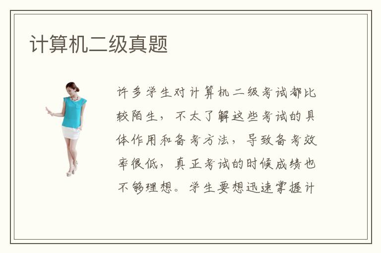 許多學(xué)生對計算機二級考試都比較陌生,不太了解這些考試的具體作用和備考方法,導(dǎo)致備考效率很低,真正考試的時候成績也不夠理想。學(xué)生要想迅速掌握計算機二級的內(nèi)容,可以多看看計算機二級真題,了解備考的方法和學(xué)習(xí)方式,找到更多學(xué)習(xí)重點,提高學(xué)習(xí)效率,復(fù)習(xí)時少走彎路。一部分同學(xué)已經(jīng)有很長時間的準備,但是看不到成果,所以會報名計算機二級視頻教程。老師會把很多精彩的課程帶給大家,結(jié)合計算機二級考試大綱,進行深層次的訓(xùn)練,利用多種教學(xué)的方式,為大家講解系統(tǒng)的知識。另外,計算機二級考試中有一些難理解的題目,也有一些考試的新題型,那老師會針對這些題型進行嚴格的訓(xùn)練,使大家有條不紊面對各種復(fù)雜的知識,從而取得更好的分數(shù)。