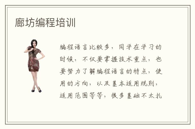 編程語言比較多,同學在學習的時候,不僅要掌握技術重點,也要努力了解編程語言的特點,使用的方向,以及基本適用規(guī)則,適用范圍等等,很多基礎不太扎實的同學如果沒有老師的指導,進度會容易受影響,可以報名廊坊編程培訓編程培訓學校,了解學校的基礎課程和教學任務。編程怎么學習,編程語言的學習過程中,要了解一些基礎的知識點,包括使用規(guī)范以及使用原則,然后再選擇適當?shù)膽梅绞?,一步一步積累應用知識。編程怎么應用,一般會針對不同的使用項目和應用范圍一起結合。比如有些技術人員需要進行網(wǎng)頁爬蟲或者程序開發(fā),這時可以用到Python編程語言。如果要進行某些獨立的軟件設計,可以用到Java編程。要是項目過于復雜,很難利用一種編程語言實現(xiàn)功能,需要多種編程語言共同進行。