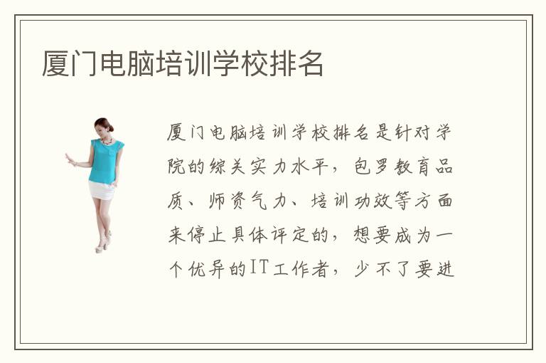 廈門電腦培訓(xùn)學(xué)校電腦培訓(xùn)學(xué)校排名是針對(duì)學(xué)院的綜關(guān)實(shí)力水平,包羅教育品質(zhì)、師資氣力、培訓(xùn)功效等方面來停止具體評(píng)定的,想要成為一個(gè)優(yōu)異的IT工作者,少不了要進(jìn)入相干的培訓(xùn)學(xué)校學(xué)習(xí)前進(jìn),計(jì)算機(jī)IT行業(yè)是一個(gè)靠不竭的堆集來完成其培訓(xùn)結(jié)果的專業(yè),在往后的學(xué)習(xí)工作中,我們都應(yīng)當(dāng)重視堆集。廈門電腦培訓(xùn)結(jié)果可不雅嘛培訓(xùn)結(jié)果如何廈門電腦計(jì)算機(jī)培訓(xùn)費(fèi)用是多少錢廈門電腦培訓(xùn)學(xué)校排名推薦電腦學(xué)校