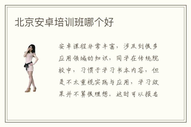 安卓課程非常豐富,涉及到很多應(yīng)用領(lǐng)域的知識(shí),同學(xué)在傳統(tǒng)院校中,習(xí)慣于學(xué)習(xí)書本內(nèi)容,但是不太重視實(shí)踐與應(yīng)用,學(xué)習(xí)效果并不算很理想。這時(shí)可以報(bào)名安卓輔導(dǎo)班機(jī)構(gòu)的課程,由老師來(lái)幫助自己梳理知識(shí)的結(jié)構(gòu),設(shè)置明確的學(xué)習(xí)目標(biāo),制定任務(wù)清單,這樣學(xué)習(xí)就可以按部就班,贏得更多優(yōu)勢(shì)。北京安卓培訓(xùn)安卓培訓(xùn)班哪個(gè)好,其實(shí)不同學(xué)校的教育速度,教學(xué)質(zhì)量等等都不同,同學(xué)要對(duì)比一下這些培訓(xùn)班的好處。假如安卓培訓(xùn)班價(jià)值不夠高,培訓(xùn)的速度很慢,都會(huì)影響大家的學(xué)習(xí)進(jìn)展,信心也會(huì)變得越來(lái)越少。安卓開(kāi)發(fā)工程師的待遇特別高,因?yàn)榧夹g(shù)人員正處于供不應(yīng)求的階段,要是同學(xué)把握好當(dāng)下,努力強(qiáng)化個(gè)人的技術(shù)能力,完成很多復(fù)雜的工作任務(wù),安卓開(kāi)發(fā)的待遇會(huì)高很多。