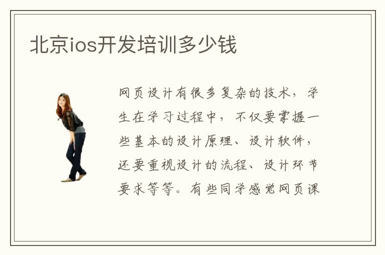 網(wǎng)頁(yè)設(shè)計(jì)有很多復(fù)雜的技術(shù),學(xué)生在學(xué)習(xí)過(guò)程中,不僅要掌握一些基本的設(shè)計(jì)原理、設(shè)計(jì)軟件,還要重視設(shè)計(jì)的流程、設(shè)計(jì)環(huán)節(jié)要求等等。有些同學(xué)感覺(jué)網(wǎng)頁(yè)課程越來(lái)越復(fù)雜,應(yīng)用難度越來(lái)越高,所以會(huì)考慮參加網(wǎng)頁(yè)設(shè)計(jì)培訓(xùn)設(shè)計(jì)培訓(xùn)班的課程。北京網(wǎng)頁(yè)設(shè)計(jì)培訓(xùn)多少錢跟很多因素相關(guān),比如教學(xué)課程類型,輔導(dǎo)班的專業(yè)水準(zhǔn),假如選擇教育水準(zhǔn)比較高的輔導(dǎo)機(jī)構(gòu),報(bào)名學(xué)費(fèi)會(huì)上升,但如果選擇小型的輔導(dǎo)班,費(fèi)用可能就會(huì)下降。網(wǎng)頁(yè)設(shè)計(jì)在線輔導(dǎo)有重要價(jià)值,很多學(xué)生都希望掌握這些課程,從而取得很好的應(yīng)用能力。網(wǎng)頁(yè)設(shè)計(jì)有什么應(yīng)用,網(wǎng)頁(yè)設(shè)計(jì)的應(yīng)用比較多,比如ui設(shè)計(jì)以及各種瀏覽器搜索引擎設(shè)計(jì)、用戶交互設(shè)計(jì)等等。所以大家要重視這部分應(yīng)用,努力學(xué)習(xí)前沿知識(shí),爭(zhēng)取獲得更好的發(fā)展。