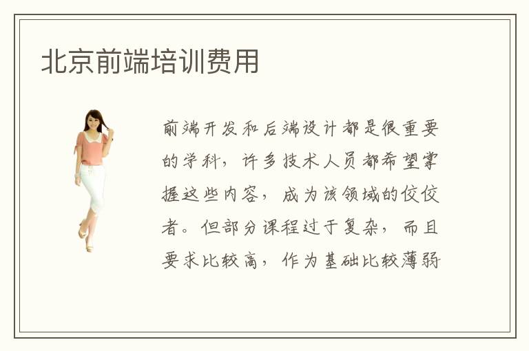 前端開發(fā)和后端設(shè)計都是很重要的學(xué)科,許多技術(shù)人員都希望掌握這些內(nèi)容,成為該領(lǐng)域的佼佼者。但部分課程過于復(fù)雜,而且要求比較高,作為基礎(chǔ)比較薄弱的學(xué)生,很難通過自學(xué)方式掌握這些技術(shù)。為了提高個人的技術(shù)優(yōu)勢,可以報名前端培訓(xùn)機(jī)構(gòu),由老師劃分課程的難點與重點,學(xué)習(xí)效率就會高很多。北京前端培訓(xùn)費用可能需要4000~1萬元,但事實上課程類型、學(xué)校的水平、老師的等級等等都不同,收費標(biāo)準(zhǔn)存在波動。假如很想學(xué)習(xí)一些深層次的課程,學(xué)生應(yīng)該找到高水平的學(xué)校,由專業(yè)老師作為引導(dǎo),學(xué)習(xí)的質(zhì)量會更高,報名費會上升。前端網(wǎng)絡(luò)指導(dǎo)有重要價值,因為大家在復(fù)習(xí)階段沒有太充裕的時間,很難到現(xiàn)場上課,選擇互聯(lián)網(wǎng)教學(xué)的方式,可以節(jié)約時間,也能接觸到很多前端開發(fā)的應(yīng)用的技術(shù)。