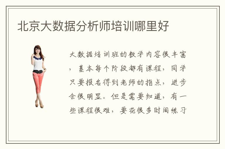 大數(shù)據(jù)培訓(xùn)班的教學(xué)內(nèi)容很豐富,基本每個階段都有課程,同學(xué)只要報名得到老師的指點,進步會很明顯。但是需要知道,有一些課程很難,要花很多時間練習(xí),學(xué)生如果滿足現(xiàn)狀,或者掉以輕心,都難以獲得快速的進展。不少同學(xué)意識到個人的不足,所以會考慮大數(shù)據(jù)分析培訓(xùn)數(shù)據(jù)分析培訓(xùn)班,得到專業(yè)老師的教學(xué)。北京大數(shù)據(jù)分析師培訓(xùn)哪里好,考慮培訓(xùn)班時,要看看這些學(xué)校的綜合能力、教學(xué)的方式、培訓(xùn)內(nèi)容、培訓(xùn)成果。大數(shù)據(jù)分析師培訓(xùn)班的小班教學(xué)有很強的針對性,學(xué)員會從數(shù)據(jù)分析的課程中找到學(xué)習(xí)目標,也能快速挖掘自己的弱勢。大數(shù)據(jù)分析師的工作任務(wù)很多,如要進行數(shù)據(jù)價值分析、數(shù)據(jù)模型處理、數(shù)據(jù)庫管理與應(yīng)用。要是同學(xué)的缺乏某方面的訓(xùn)練,需要及時彌補,以免被同行淘汰。