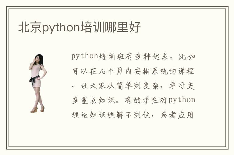 python培訓(xùn)班有多種優(yōu)點(diǎn),比如可以在幾個(gè)月內(nèi)安排系統(tǒng)的課程,讓大家從簡(jiǎn)單到復(fù)雜,學(xué)習(xí)更多重點(diǎn)知識(shí)。有的學(xué)生對(duì)python理論知識(shí)理解不到位,或者應(yīng)用能力不夠強(qiáng),很容易陷入困境,但選擇某些專業(yè)的python輔導(dǎo)班后,成績(jī)會(huì)有很大改進(jìn)。北京python培訓(xùn)哪里好,大家的選擇標(biāo)準(zhǔn)不同,很難去判斷哪一個(gè)比較好。比如不少學(xué)生都希望短期內(nèi)掌握python的知識(shí),那么可以對(duì)比每個(gè)培訓(xùn)班的教學(xué)質(zhì)量和培訓(xùn)速度。假如輔導(dǎo)班的python培訓(xùn)進(jìn)度非???,而且教學(xué)質(zhì)量特別高,同學(xué)可以適當(dāng)報(bào)名。python用處主要在于前端開發(fā)、數(shù)據(jù)庫(kù)應(yīng)用、操作系統(tǒng)安裝。學(xué)生要想應(yīng)用及這些內(nèi)容,就應(yīng)該要不斷完善知識(shí)結(jié)構(gòu),掌握很多基礎(chǔ)的課程,比如計(jì)算機(jī)算法、基本數(shù)據(jù)結(jié)構(gòu)、編程、字符編碼等等。