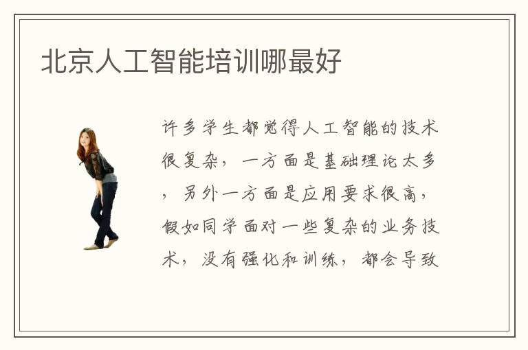 許多學生都覺得人工智能的技術很復雜,一方面是基礎理論太多,另外一方面是應用要求很高,假如同學面對一些復雜的業(yè)務技術,沒有強化和訓練,都會導致難題越來越多,應用的效果越來越少。要是同學想擺脫這些學習狀況,可以及時調整,包括報名ai輔導機構,由一些專業(yè)的老師帶領自己學習重要知識。北京人工智能培訓哪最好,有部分人工智能培訓機構的課程非常有趣,也會分很多個層次,讓大家學習喜歡的內容,也能得到很多進步。人工智能培訓老師非常重視同學的掌握效果和學習進展,會在不同的階段劃分課程,再結合專業(yè)檢測的方式,了解同學的掌握情況。若同學的掌握效果不太好,老師就會針對這些問題,安排對應的人工智能課程,然后進行一點一滴地彌補。
