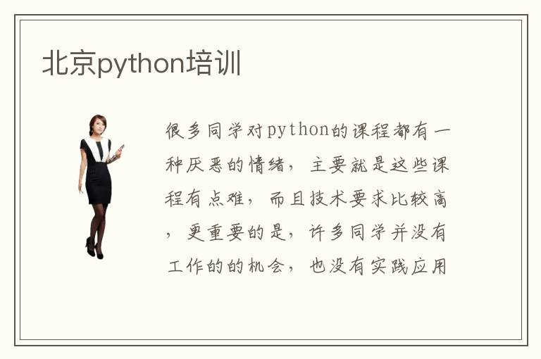 很多同學(xué)對python的課程都有一種厭惡的情緒,主要就是這些課程有點(diǎn)難,而且技術(shù)要求比較高,更重要的是,許多同學(xué)并沒有工作的的機(jī)會,也沒有實(shí)踐應(yīng)用的項(xiàng)目,長時間都沒有辦法進(jìn)步。為了快速改善這些問題,大家可以報名北京python培訓(xùn)學(xué)校的課程,一方面是因?yàn)檫@些學(xué)校的老師非常專業(yè),可以展示不同的學(xué)習(xí)重點(diǎn),結(jié)合大家的學(xué)習(xí)階段設(shè)置不同的學(xué)習(xí)目標(biāo)和方法,這樣同學(xué)不僅可以快速獲得進(jìn)步,而且也會擁有更足夠的信心,想要繼續(xù)學(xué)習(xí)更多深層的知識。python培訓(xùn)方法主要有1對1的輔導(dǎo),小班輔導(dǎo),大班授課等等,有的同學(xué)進(jìn)步比較慢,主要就是沒有找對方向。如果報名1對1的輔導(dǎo)課程,老師就會幫助大家劃分重點(diǎn),明確學(xué)習(xí)規(guī)劃。python培訓(xùn)時間要多久,大概是一個月到三個月,但具體的時間安排并不固定。