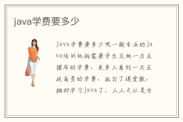 java學(xué)費(fèi)要多少呢一般專業(yè)的java培訓(xùn)機(jī)構(gòu)需要學(xué)生交納一萬五擺布的學(xué)費(fèi),良多人看到一萬五這高貴的學(xué)費(fèi),就打了退堂脹,拋卻學(xué)習(xí)java了。人人之以是會(huì)選擇學(xué)習(xí)java的緣由有良多,好比說關(guān)于互聯(lián)網(wǎng)有著稠密的樂趣,或是將來想要處置java相干的工作等等。最主要的緣由還是由于java軟件開發(fā)設(shè)計(jì)工程師是眼前國內(nèi)大批高薪需求的人材,前景廣漠。java學(xué)費(fèi)要多少推薦電腦學(xué)校
