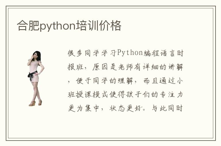 很多同學(xué)學(xué)習(xí)Python編程語言時(shí)報(bào)班,原因是老師有詳細(xì)的講解,便于同學(xué)的理解,而且通過小班授課模式使得孩子們的專注力更為集中,狀態(tài)更好。與此同時(shí),在老師的監(jiān)督下,同學(xué)更能夠端正態(tài)度,而不敢隨隨便便對(duì)待這些知識(shí)。合肥python培訓(xùn)價(jià)格可能要花5000~27000元,主要是Python輔導(dǎo)機(jī)構(gòu)類型特別多,教學(xué)口碑不太一樣,會(huì)影響到具體的收費(fèi)。python指導(dǎo)好嗎,很多人為了提升就業(yè)競爭力,會(huì)考慮報(bào)名這些機(jī)構(gòu),而機(jī)構(gòu)的特點(diǎn)就是強(qiáng)化大家的工作水平,積累豐富的經(jīng)驗(yàn),為應(yīng)聘時(shí)提供更多優(yōu)勢(shì)。python工程師的就業(yè)率相當(dāng)高,無論是在北上廣深,還是在各個(gè)省份的省會(huì),都有大量的人才缺口,大家完成Python編程的理論學(xué)習(xí)后,可以自己動(dòng)手完成網(wǎng)頁開發(fā),計(jì)算機(jī)網(wǎng)絡(luò)運(yùn)維,數(shù)據(jù)分析等等工作任務(wù)。