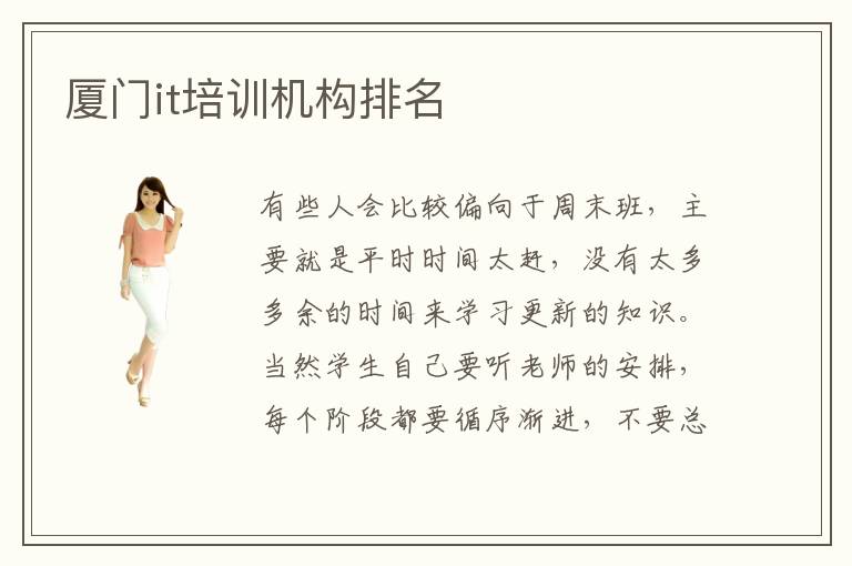 有些人會(huì)比較偏向于周末班,主要就是平時(shí)時(shí)間太趕,沒有太多多余的時(shí)間來學(xué)習(xí)更新的知識(shí)。當(dāng)然學(xué)生自己要聽老師的安排,每個(gè)階段都要循序漸進(jìn),不要總期待短時(shí)間內(nèi)掌握,應(yīng)該有更多時(shí)間理解和分析。計(jì)算機(jī)如今在我們生活是個(gè)非常常見的東西,而且現(xiàn)在我們的生活工作學(xué)習(xí)都離不開計(jì)算機(jī)。那么作為貴州發(fā)展得最好的城市之一,廈門市當(dāng)然注重計(jì)算機(jī)人才的培養(yǎng)。因?yàn)?a href="/it/detail12106.html">廈門it培訓(xùn)水平很高很高,所以廈門it培訓(xùn)也有很多很多。同學(xué)不管是在理論層面,還是在應(yīng)用層面,都會(huì)有許多進(jìn)展。在這里學(xué)習(xí)起來非常的輕松愉悅,掌握專業(yè)知識(shí)也非常的簡(jiǎn)單。而且自己也會(huì)有明確的方向,因此狀態(tài)會(huì)更好,目標(biāo)更加明確,成績(jī)有顯著的提升。廈門it培訓(xùn)機(jī)構(gòu)當(dāng)然可以學(xué)習(xí)it啊,電腦學(xué)校不一定全是電腦專業(yè),還有很多和計(jì)算機(jī)相關(guān)專業(yè)的,it編程這類也是和電腦相關(guān)的,而且目前這類專業(yè)就業(yè)率還是蠻高的,主要是市場(chǎng)需求空間大,對(duì)這類人才比較稀缺,物以稀為貴嘛,說的就是這個(gè)道理,不過話說回來,現(xiàn)在這類培訓(xùn)機(jī)構(gòu)太多了,好壞難辨,我想廈門it培訓(xùn)機(jī)構(gòu)也是如此,而且大家對(duì)好壞評(píng)價(jià)不一,有的學(xué)校是看重這類設(shè)施投資,有的學(xué)校可能資金投入側(cè)重點(diǎn)在宣傳力度上面,我個(gè)人覺得師資力量和教學(xué)質(zhì)量是考察一個(gè)學(xué)校好壞的重要因素,如果你打算去廈門it培訓(xùn)機(jī)構(gòu)學(xué)習(xí)it也是一個(gè)好的選擇,說是最基本工資都是五千左右,對(duì)于一個(gè)剛剛畢業(yè)的學(xué)生來說也是不錯(cuò)的,如果廈門it培訓(xùn)機(jī)構(gòu)的it專業(yè)是學(xué)校王牌專業(yè),完全可以去學(xué)習(xí)啊中考分?jǐn)?shù)不夠有人選擇去復(fù)讀一年,可能是因?yàn)榭荚嚊]有考好,而有的學(xué)生自身對(duì)學(xué)習(xí)積極性不高,沒有想繼續(xù)上學(xué)的意愿,所以這類學(xué)生就打算直接打工或者去學(xué)一門技術(shù)了,而家里都會(huì)建議去學(xué)一門技術(shù),畢竟是一輩子的大事,我個(gè)人覺得學(xué)一門技術(shù)也是蠻好的,現(xiàn)在藍(lán)領(lǐng)薪資并不比白領(lǐng)低,最近不是很流行學(xué)it編程,計(jì)算機(jī)專業(yè)相關(guān)專業(yè)嘛,你不妨也去試試,廈門it培訓(xùn)機(jī)構(gòu)也是很多的,當(dāng)然你可以根據(jù)個(gè)人興趣愛好去學(xué)啊,如果你準(zhǔn)備去那一個(gè)學(xué)校學(xué)習(xí),提前了解一下學(xué)校情況也是必要的,比如師資力量,機(jī)構(gòu)背景這塊的,還有就是學(xué)內(nèi)環(huán)境基礎(chǔ)設(shè)施這方面,直接可以看到的,所以廈門it培訓(xùn)機(jī)構(gòu)校內(nèi)環(huán)境你可以親自看一下的啊,至于口碑不錯(cuò)的廈門it培訓(xùn)機(jī)構(gòu)還是有的,就之前說的北大青鳥這個(gè),傳智播客都可以啊,還有你可以去網(wǎng)上搜一下口碑好的廈門it培訓(xùn)機(jī)構(gòu)排名靠前的幾個(gè),多對(duì)比一下就容易選擇。