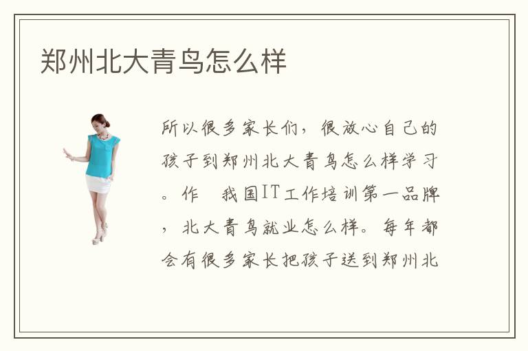 所以很多家長們,很放心自己的孩子到鄭州北大青鳥怎么樣學(xué)習(xí)。作爲(wèi)我國IT工作培訓(xùn)第一品牌,北大青鳥就業(yè)怎么樣。每年都會有很多家長把孩子送到鄭州北大青鳥學(xué)校進(jìn)行學(xué)習(xí),這家長對鄭州北大青鳥學(xué)校都特別放心,十分的信賴。這里總結(jié)了鄭州電腦培訓(xùn)學(xué)校各自的綜合能力,方便您的選擇。北大青鳥鄭州分校教育水平怎么樣。這里推薦鄭州北大青鳥學(xué)校,這是一所專門的北大青鳥培訓(xùn)學(xué)校,里面開設(shè)有許多北大青鳥專業(yè)的培訓(xùn)班,培訓(xùn)學(xué)校辦學(xué)十多年來,畢業(yè)學(xué)生可謂桃李滿天下,學(xué)校為社會和北大青鳥事業(yè)做了很大的貢獻(xiàn)。其中最有代表性的學(xué)校就是鄭州北大青鳥怎么樣。鄭州北大青鳥環(huán)境優(yōu)美交通方便周圍安靜適合學(xué)習(xí)提升自己。而鄭州北大青鳥環(huán)境還是非常不錯的,四周特別的優(yōu)美,而且寂靜很適合學(xué)生們學(xué)習(xí)。