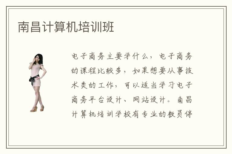 電子商務(wù)主要學(xué)什么,電子商務(wù)的課程比較多,如果想要從事技術(shù)類的工作,可以適當(dāng)學(xué)習(xí)電子商務(wù)平臺設(shè)計、網(wǎng)站設(shè)計。南昌計算機培訓(xùn)學(xué)校有專業(yè)的教員停止輔導(dǎo)培訓(xùn),針對學(xué)生的特點,學(xué)校選擇關(guān)適的專業(yè)教員、安排特點的專業(yè)課程,盡力讓學(xué)生學(xué)習(xí)到最具適用性子的常識,讓本身的計算機水平獲得質(zhì)的奔騰。同時,正因為南昌計算機培訓(xùn)技術(shù)含量高,南昌計算機培訓(xùn)機構(gòu)也就有很多很多。輕輕松松就可以學(xué)到專業(yè)的知識。南昌計算機培訓(xùn)學(xué)校選擇可以看一下學(xué)生的學(xué)習(xí)氛圍以及學(xué)校的教學(xué)質(zhì)量,就業(yè)水平等等。南昌計算機培訓(xùn)學(xué)校努力于為南昌市的信息化成長做進(jìn)獻(xiàn),為互聯(lián)網(wǎng)市場送去多量優(yōu)異的技術(shù)人材。這些問題的產(chǎn)生都是來自于你對南昌計算機培訓(xùn)學(xué)校各方面的不了解。