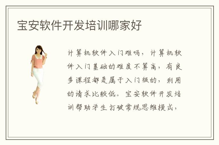 計(jì)算機(jī)軟件入門難嗎,計(jì)算機(jī)軟件入門基礎(chǔ)的難度不算高,有良多課程都是屬于入門級(jí)的,利用的請(qǐng)求比較低。寶安軟件開(kāi)發(fā)培訓(xùn)幫助學(xué)生打破常規(guī)思維模式,讓學(xué)生的創(chuàng)新科研能力得到提高和釋放。寶安電腦培訓(xùn)中心每年接受的學(xué)生不計(jì)其數(shù),培訓(xùn)價(jià)值也是很高的。要說(shuō)現(xiàn)如今最具有發(fā)展前景的職業(yè)是什么呢。不少學(xué)生都會(huì)選擇一對(duì)一輔導(dǎo)以及在線教學(xué),因?yàn)檫@些輔導(dǎo)的方式效率更高,針對(duì)性比較強(qiáng),不用受到空間限制,在家里或者是在學(xué)校都可以上課。但是需要知道,有些技術(shù)確實(shí)復(fù)雜,內(nèi)容非常豐富,同學(xué)沒(méi)有深入理解,也不知道怎樣去學(xué)習(xí),都有可能影響工作。寶安軟件開(kāi)發(fā)培訓(xùn)費(fèi)用也許要4000~9500元,但這只是大概范圍,沒(méi)有固定的答案,大家可以先確定好課程,然后再找合適的項(xiàng)目。