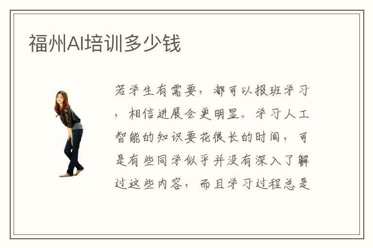 若學(xué)生有需要,都可以報(bào)班學(xué)習(xí),相信進(jìn)展會更明顯。學(xué)習(xí)人工智能的知識要花很長的時(shí)間,可是有些同學(xué)似乎并沒有深入了解過這些內(nèi)容,而且學(xué)習(xí)過程總是滿足現(xiàn)狀,不愿意深層次理解重點(diǎn),導(dǎo)致學(xué)習(xí)的質(zhì)量很低,達(dá)不到自己的學(xué)習(xí)目標(biāo)。福州人工智能培訓(xùn)人工智能培訓(xùn)機(jī)構(gòu)的輔導(dǎo)課程相當(dāng)多,每個階段都有不一樣的指導(dǎo)方案,不管是基礎(chǔ)理論,還是專業(yè)的應(yīng)用,都可以大量的強(qiáng)化訓(xùn)練,使得每一位學(xué)生都有很好的進(jìn)步。人工智能輔導(dǎo)機(jī)構(gòu)的課程可謂是各式各樣,有總有一款能夠符合學(xué)生的期待,比如就業(yè)輔導(dǎo)課,專門針對一些自己能力不是特別強(qiáng)的同學(xué)或者是剛剛應(yīng)聘的學(xué)生。但報(bào)名輔導(dǎo)班時(shí),大家要關(guān)注機(jī)構(gòu)的具體信息,包括福州ai培訓(xùn)多少錢,培訓(xùn)要多長時(shí)間,有哪些優(yōu)勢等等。
