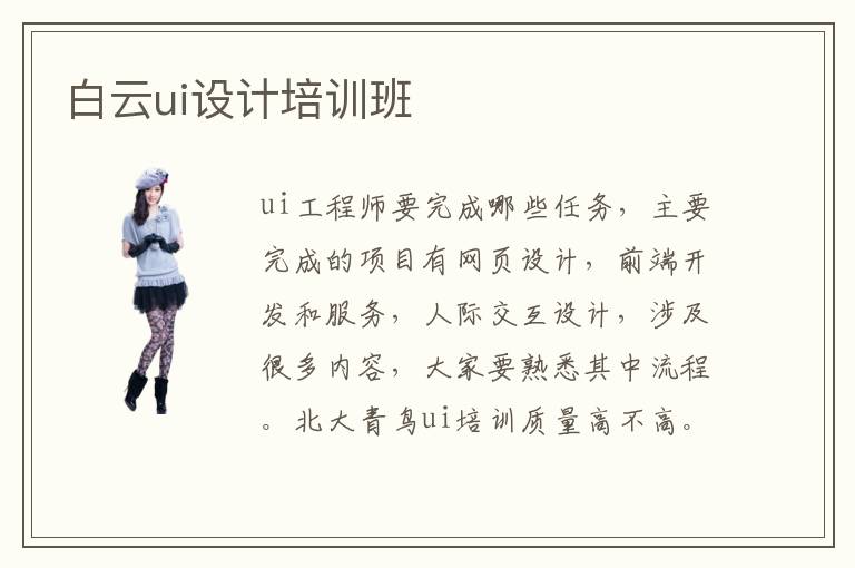 ui工程師要完成哪些任務(wù),主要完成的項(xiàng)目有網(wǎng)頁設(shè)計(jì),前端開發(fā)和服務(wù),人際交互設(shè)計(jì),涉及很多內(nèi)容,大家要熟悉其中流程。北大青鳥ui培訓(xùn)質(zhì)量高不高。而白云ui培訓(xùn)班可以培養(yǎng)同學(xué)的設(shè)計(jì)能力和創(chuàng)新能力,采用實(shí)踐與理論教學(xué)的方式,為同學(xué)展示重點(diǎn)技術(shù),讓大家更快理解ui技術(shù)要求。其次,老師和同學(xué)們交流會(huì)更加通暢,而老師在一次次的交流過程中,更清楚同學(xué)遇到的難題,然后再介紹許多重要的課程和訓(xùn)練方法。白云UI培訓(xùn)班在培訓(xùn)教學(xué)的過程中,及時(shí)研究洞察時(shí)代的發(fā)展新形勢(shì)和計(jì)算機(jī)行業(yè)的發(fā)展前景,并且調(diào)整白云UI培訓(xùn)機(jī)構(gòu)的課程安排內(nèi)容。ui設(shè)計(jì)師培訓(xùn)班學(xué)費(fèi)大概在5000到1萬元,良多學(xué)生在報(bào)名培訓(xùn)班的時(shí)辰,城市出格正視每個(gè)培訓(xùn)班的學(xué)習(xí)才能、講授的規(guī)模、培訓(xùn)的思緒等等。