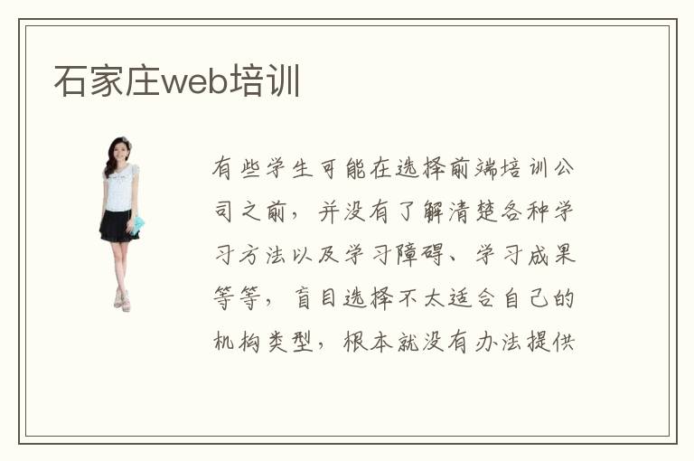 有些學(xué)生可能在選擇前端培訓(xùn)公司之前,并沒有了解清楚各種學(xué)習(xí)方法以及學(xué)習(xí)障礙、學(xué)習(xí)成果等等,盲目選擇不太適合自己的機(jī)構(gòu)類型,根本就沒有辦法提供自己想要的課程,當(dāng)然就很難凸顯出wb前端培訓(xùn)的質(zhì)量和效果,所以大家要考慮清楚這些專業(yè)選擇。但是透過專業(yè)老師的輔導(dǎo),這些問題都很快就能解決。而網(wǎng)站開發(fā)技術(shù),就是比較受歡迎的專業(yè)技術(shù)。其實(shí),石家莊網(wǎng)站技術(shù)還是比較不錯(cuò)的,很多人都曾在石家莊web開發(fā)培訓(xùn)。隨著計(jì)算機(jī)時(shí)代的到來,一直備受人們關(guān)注的就是計(jì)算機(jī)技術(shù),而計(jì)算機(jī)技術(shù)又分好多種,其中建網(wǎng)站就是其中的一種,學(xué)習(xí)建網(wǎng)站并不會枯燥,畢竟想著以后誘人的工作待遇就會靜下心來學(xué)習(xí)建網(wǎng)站技術(shù)。其次,老師也重視同學(xué)的體驗(yàn),介紹許多有趣的課程,讓學(xué)生們真正感受到學(xué)習(xí)樂趣。