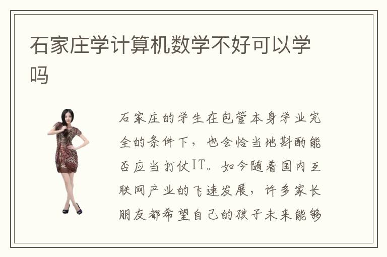 石家莊的學(xué)生在包管本身學(xué)業(yè)完全的條件下,也會(huì)恰當(dāng)?shù)卣遄媚芊駪?yīng)當(dāng)打仗IT。如今隨著國內(nèi)互聯(lián)網(wǎng)產(chǎn)業(yè)的飛速發(fā)展,許多家長朋友都希望自己的孩子未來能夠從事IT行業(yè),但是一些學(xué)生由于種種原因,沒能考入本科的計(jì)算機(jī)專業(yè),于是家長朋友們就將目光放在了石家莊計(jì)算機(jī)培訓(xùn)計(jì)算機(jī)培訓(xùn)學(xué)校上,原因很簡單,相比于傳統(tǒng)大學(xué),石家莊計(jì)算機(jī)培訓(xùn)學(xué)校屬于私人成立培訓(xùn)機(jī)構(gòu),在招生吧標(biāo)準(zhǔn)來說會(huì)寬松太多,屬于交學(xué)費(fèi)即可入學(xué)。所以,學(xué)習(xí)計(jì)算機(jī)技術(shù)很多人都選擇到石家莊計(jì)算機(jī)培訓(xùn)機(jī)構(gòu)學(xué)習(xí),在這里,可以得到非常多的專業(yè)性知識(shí)。石家莊計(jì)算機(jī)培訓(xùn)中心本是一個(gè)名不見經(jīng)傳的小教育機(jī)構(gòu),但是,當(dāng)?shù)貛熒墓餐ο拢?a href="/it/detail770.html">石家莊計(jì)算機(jī)學(xué)校取得了傲人的成績,打開了國內(nèi)的知名度。石家莊計(jì)算機(jī)課程學(xué)習(xí)起來可以讓我們更領(lǐng)會(huì)計(jì)算機(jī)。