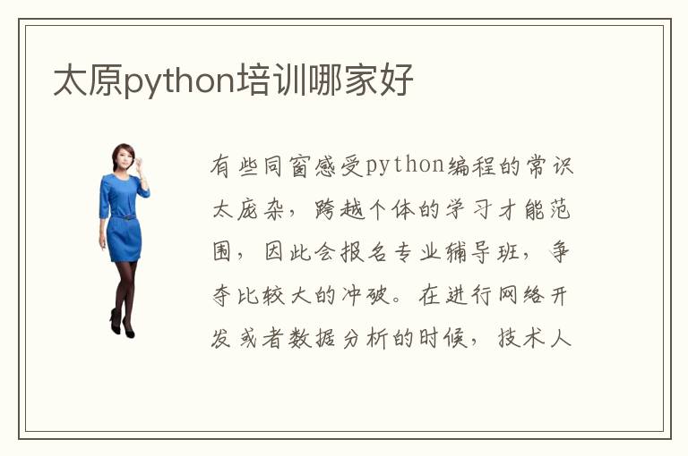 有些同窗感受python編程的常識(shí)太龐雜,跨越個(gè)體的學(xué)習(xí)才能范圍,因此會(huì)報(bào)名專業(yè)輔導(dǎo)班,爭奪比較大的沖破。在進(jìn)行網(wǎng)絡(luò)開發(fā)或者數(shù)據(jù)分析的時(shí)候,技術(shù)人員可以利用這些重要的編程語言,讓計(jì)算機(jī)完成指令,從而提高工作效率,減少工作問題。不過現(xiàn)在培訓(xùn)班的類型確實(shí)太多,有些人會(huì)針對(duì)大數(shù)據(jù)來培訓(xùn),希望可以在未來更加深入了解這些專業(yè)的方向,那么太原python培訓(xùn)好不好。一些同學(xué)非常重視人工智能專業(yè)的學(xué)習(xí),也要花很多時(shí)間,練習(xí)其中的操作,希望完成多種工作任務(wù),取得更好的發(fā)展。太原python培訓(xùn)價(jià)格其實(shí)不是固定不變,一般在4500元到15000元,要看不同學(xué)校的教育水平,培養(yǎng)的方案,課程優(yōu)勢(shì)等等。python教育機(jī)構(gòu)有實(shí)踐教學(xué)嗎,對(duì)一些同學(xué)來說,不太懂怎么學(xué)習(xí)計(jì)算機(jī)專業(yè)的知識(shí),也不了解工作應(yīng)用。