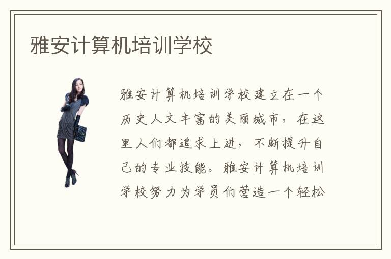 雅安計(jì)算機(jī)培訓(xùn)學(xué)校建立在一個(gè)歷史人文豐富的美麗城市,在這里人們都追求上進(jìn),不斷提升自己的專業(yè)技能。雅安計(jì)算機(jī)培訓(xùn)學(xué)校努力為學(xué)員們營(yíng)造一個(gè)輕松快樂的學(xué)習(xí)氛圍,因材施教的小班教學(xué)模式,充分保障了每一位學(xué)員都能夠得到最好的專業(yè)教學(xué),任何知識(shí)點(diǎn)細(xì)節(jié)都會(huì)被學(xué)員們掌握。那么,雅安計(jì)算機(jī)培訓(xùn)學(xué)校該怎么報(bào)名參加呢?大家可以咨詢雅安計(jì)算機(jī)培訓(xùn)學(xué)校的招生熱線。