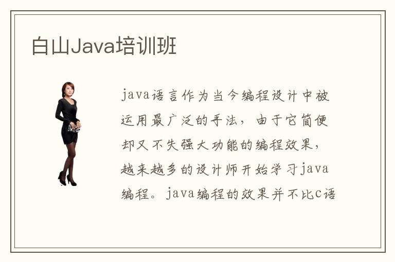 java語言作為當(dāng)今編程設(shè)計(jì)中被運(yùn)用最廣泛的手法,由于它簡便卻又不失強(qiáng)大功能的編程效果,越來越多的設(shè)計(jì)師開始學(xué)習(xí)java編程。java編程的效果并不比c語言的效果差,而java編程所耗費(fèi)的時(shí)間卻比c語言要少的多。白山Java培訓(xùn)班通過四個(gè)月左右專業(yè)的培訓(xùn)課程,讓學(xué)員們從java編程菜鳥編程java編程精英,這個(gè)專業(yè)的學(xué)習(xí)對于未來的就業(yè)發(fā)展也是很有幫助的。