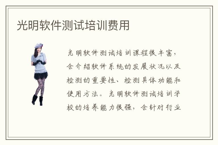 光明軟件測試培訓(xùn)課程很豐富,會介紹軟件系統(tǒng)的發(fā)展狀況以及檢測的重要性、檢測具體功能和使用方法。光明軟件測試培訓(xùn)學(xué)校的培養(yǎng)能力很強,會針對行業(yè)分析,安排重要的技能培訓(xùn),為大家詳細介紹軟件測試的重點。軟件測試小班輔導(dǎo)作用很明顯,首先老師與同學(xué)之間在課堂上的交流機會多很多,同學(xué)有任何不同的問題,老師也會了如指掌,然后安排針對性的技術(shù)課程,分析軟件測試流程。軟件測試培訓(xùn)人數(shù)很多,假如學(xué)員的能力不強,軟件學(xué)習(xí)水準不夠優(yōu)越,競爭水平很低,可選擇一些靠譜的軟件測試輔導(dǎo)班。別的另有部門學(xué)生很是當真學(xué)習(xí),但學(xué)習(xí)時間很無限,不能不斟酌專業(yè)指點班的講課計劃。軟件測試的課程有很多應(yīng)用知識,可是學(xué)生在傳統(tǒng)的院校當中,缺乏應(yīng)用訓(xùn)練,沒有強大的解決問題的能力,確實非常浪費時間。
