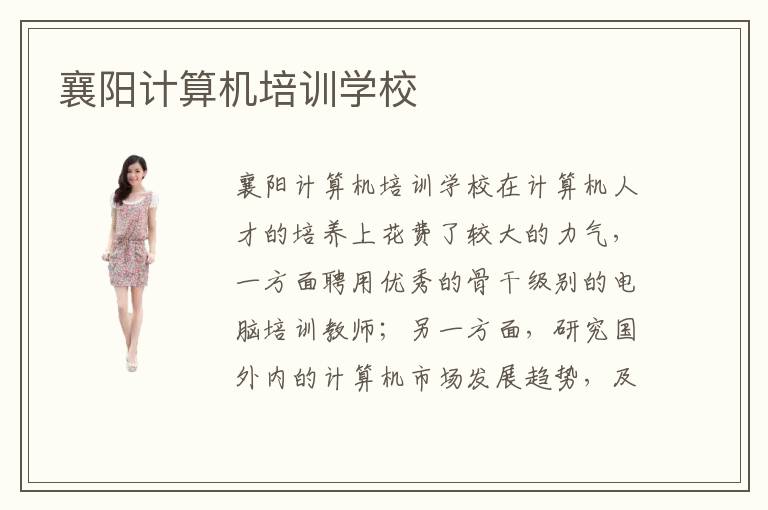 襄陽計算機培訓學校在計算機人才的培養(yǎng)上花費了較大的力氣,一方面聘用優(yōu)秀的骨干級別的電腦培訓教師;另一方面,研究國外內的計算機市場發(fā)展趨勢,及時調整教學方向。襄陽電腦培訓班培訓內容在哪里可以了解?在襄陽計算機培訓機構的官網上可以對襄陽計算機培訓學校有詳細的了解和新的認知。只有,較為全面地掌握了襄陽計算機培訓機構中心的相關咨詢,才能有把握選擇好學校。