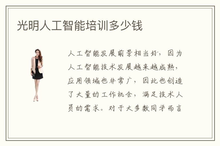 人工智能發(fā)展前景相當好,因為人工智能技術發(fā)展越來越成熟,應用領域也非常廣,因此也創(chuàng)造了大量的工作機會,滿足技術人員的需求。對于大多數同學而言,沒有人工智能專業(yè)的能力,應用經驗不夠多,很難勝任該領域的崗位。人工智能指導班的人氣很高,不僅僅因為報名費比較合適,還因為老師從很多個方面介紹人工智能的課程,包括ai理論課程和應用課程。為了得到好成績,許多同學會選擇ai培訓機構的課程,這時就要看看光明ai培訓一般多少錢。所以這時大家可以調整復習的方式,包括報名光明人工智能培訓機構,找到自己需要彌補的人工智能專業(yè)課程,學習人工智能的技術知識,積累更多項目的經驗。越來越多的人也都選擇到光明區(qū)人工智能培訓機構學習。