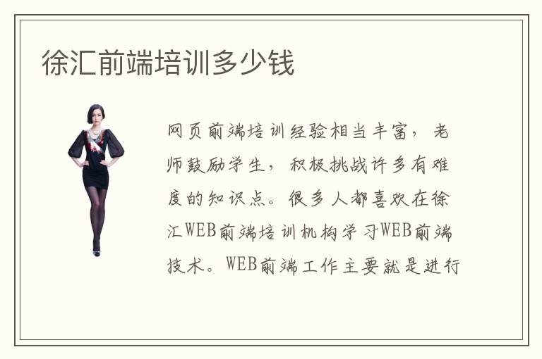 網(wǎng)頁前端培訓經(jīng)驗相當豐富,老師鼓勵學生,積極挑戰(zhàn)許多有難度的知識點。很多人都喜歡在徐匯WEB前端培訓機構學習WEB前端技術。WEB前端工作主要就是進行網(wǎng)站的前端設計,WEB前端開發(fā)工程師的主要工作職能就是美化前端界面,更好的實現(xiàn)人機互動,起到美化互聯(lián)網(wǎng)的作用。不過當下輔導班很多,大家要重視,提前撥打徐匯web前端培訓機構電話,對比各種學校的專業(yè)優(yōu)勢和教學能力。但能力還達不到要求時,可報名web前端周末課程。從提出互聯(lián)網(wǎng)+概念開始,社會各界開始關注到互聯(lián)網(wǎng)的重要性,紛紛都加入互聯(lián)網(wǎng)的改革大潮中。徐匯WEB前端培訓班都對學員非常的負責任會根據(jù)每位學員不同的情況進行針對性的教學這樣這些學員們才可以快速掌握專業(yè)知識。