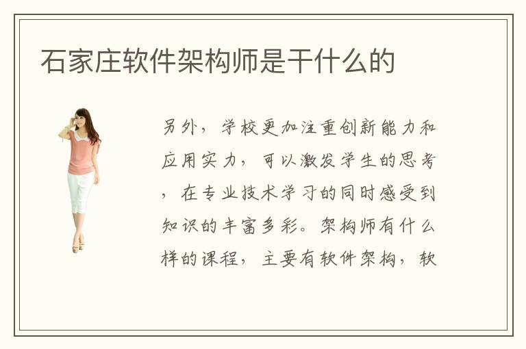 另外,學校更加注重創(chuàng)新能力和應用實力,可以激發(fā)學生的思考,在專業(yè)技術學習的同時感受到知識的豐富多彩。架構師有什么樣的課程,主要有軟件架構,軟件專業(yè)檢測,軟件開發(fā),軟件程序編程語言等等。軟件架構師要掌握的課程很多,首先要理解數(shù)據(jù)結構以及軟件設計、軟件策劃等知識,認真學習軟件架構和軟件管理等內容。在后期階段,會安排大量實踐任務,與工作接軌。石家莊架構師培訓學校很受歡迎,因為不少同學一直到自己在軟件架構方面的能力不是很強,專業(yè)水平不過關,甚至很長一段時間處于被動的狀態(tài),難以取得工作方面的優(yōu)勢。有些學生的應用能力不是很強,專業(yè)學習效果不是很突出,沒有系統(tǒng)的應對方案,所以個人的能力也會受到影響,但經過老師的嚴格輔導后,應該會有更多顯著的變化,水平有充分的凸顯,成績也會有上升的空間。