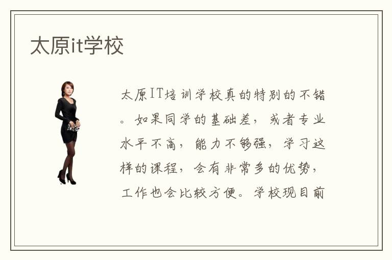 太原IT培訓(xùn)學(xué)校真的特別的不錯。如果同學(xué)的基礎(chǔ)差,或者專業(yè)水平不高,能力不夠強,學(xué)習(xí)這樣的課程,會有非常多的優(yōu)勢,工作也會比較方便。學(xué)校現(xiàn)目前開展了電子商務(wù)、會計、計算機網(wǎng)絡(luò)技術(shù)、影像與影視技術(shù)等等課程。這時可以考慮太原it培訓(xùn)機構(gòu),老師會為大家介紹許多重要課程,還能不斷鞏固和優(yōu)化知識結(jié)構(gòu)。女生學(xué)IT什么專業(yè)好。若想獲得進步,可以報名輔導(dǎo)班,把很多重要的知識掌握。it行業(yè)作為當(dāng)下的熱門行業(yè),it的許多相關(guān)崗位都屬于高薪職業(yè)。IT輔導(dǎo)得花多久,其實這個問題的答案因人而異,主要是部分IT專業(yè)的學(xué)生剛剛?cè)腴T,學(xué)習(xí)一些簡單的原理和基本應(yīng)用,投入時間不需要太多,一般一兩月即可。事實上競爭壓力比較大,許多同學(xué)都很容易找到工作,但很難有機會從事更加高端的工作崗位。