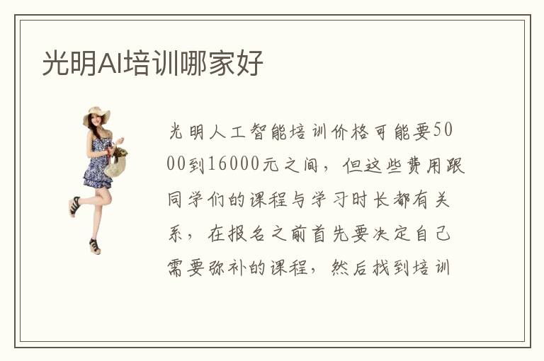 光明人工智能培訓(xùn)價格可能要5000到16000元之間,但這些費用跟同學(xué)們的課程與學(xué)習(xí)時長都有關(guān)系,在報名之前首先要決定自己需要彌補的課程,然后找到培訓(xùn)的方式。同學(xué)自學(xué)人工智能的技術(shù)時,往往要比較好的注意力和分析能力,研究新穎的技術(shù)和發(fā)展方向。ai指導(dǎo)機構(gòu)有什么輔導(dǎo)方法,通常同學(xué)們可以選擇網(wǎng)絡(luò)輔導(dǎo)方法,1對1輔導(dǎo),小班教學(xué)方法,這些方法的特色就是效率高,教學(xué)的內(nèi)容也比較多。而人工智能在線輔導(dǎo)的課程有利于幫助同學(xué)節(jié)約時間,安排復(fù)習(xí)的課程。人工智能培訓(xùn)周末班專業(yè)能力通常都取決于教育資源、培訓(xùn)的經(jīng)驗、師資力量、教學(xué)水準(zhǔn)等等。所以學(xué)生要適當(dāng)珍惜這些人工智能專業(yè)學(xué)習(xí)的機會,補充足夠的知識內(nèi)容,不要只停留在眼前,應(yīng)當(dāng)多關(guān)注以后的方向,了解專業(yè)發(fā)展趨勢。