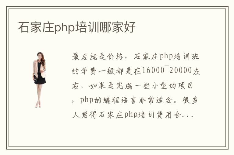 最后就是價格,石家莊php培訓php培訓班的學費一般都是在16000~20000左右。如果是完成一些小型的項目,php的編程語言非常適合。很多人覺得石家莊php培訓費用會很高,因為其教學水平比較高,在全國而言都是比較一流的。在這里,學員們爭著學習知識,相互探討不會的問題,不懂的可以隨時問老師,老師課下也會和學員們一起探討問題。有些同學意識到自己的問題,但是始終無法突破,所以會有點焦慮??梢哉f它們在師資力量上都具備優(yōu)勢,這些老師不僅身經(jīng)百戰(zhàn),經(jīng)驗豐富。php培訓優(yōu)點在于效率會很高,而且提供多元化的課程,包括理論課程、php應用指導課程等等,都會讓大家收獲更加顯著。如果個人在編程語言的應用方面理解能力不是很強,報名專業(yè)的輔導班后,會有更加透徹的認識,也對個人職業(yè)發(fā)展有好的保障。