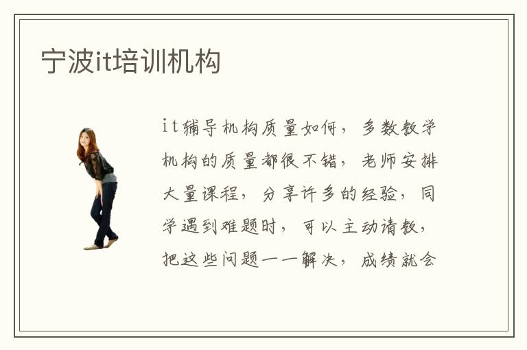 it輔導(dǎo)機(jī)構(gòu)質(zhì)量如何,多數(shù)教學(xué)機(jī)構(gòu)的質(zhì)量都很不錯,老師安排大量課程,分享許多的經(jīng)驗,同學(xué)遇到難題時,可以主動請教,把這些問題一一解決,成績就會更好。有些技術(shù)很難,但不用擔(dān)心,老師會深入淺出,把這些內(nèi)容呈現(xiàn)出來。越來越多人選擇電腦計算機(jī)作為自己的專業(yè),但由于現(xiàn)在是非常傳統(tǒng)的教學(xué)模式,照本宣科,很難理解專業(yè)的應(yīng)用情況,因此很多學(xué)生也會選擇寧波IT培訓(xùn)學(xué)校,提升專業(yè)知識水平,改善自己的就業(yè)壓力,而且能培養(yǎng)良好的使用思維,很多人在選擇這些學(xué)校的時候都會特別擔(dān)心師資的力量,那么寧波IT培訓(xùn)學(xué)校師資力量怎么樣。所以大家一定要先了解清楚,掌握不同的學(xué)雜費,資料費以及培訓(xùn)的額外費用等等,然后再進(jìn)行綜合權(quán)衡,針對自身的實際情況和經(jīng)濟(jì)水平,找到合適的學(xué)校。