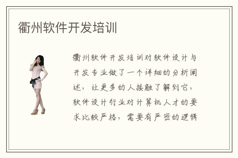 衢州軟件開(kāi)發(fā)培訓(xùn)對(duì)軟件設(shè)計(jì)與開(kāi)發(fā)專業(yè)做了一個(gè)詳細(xì)的分析闡述,讓更多的人接觸了解到它,軟件設(shè)計(jì)行業(yè)對(duì)計(jì)算機(jī)人才的要求比較嚴(yán)格,需要有嚴(yán)密的邏輯思維和敏銳的洞察力,所以衢州軟件開(kāi)發(fā)與設(shè)計(jì)專業(yè)難度系數(shù)也會(huì)比較大,學(xué)生們可以把學(xué)習(xí)軟件設(shè)計(jì)專業(yè)作為一個(gè)自我突破項(xiàng)目。衢州軟件設(shè)計(jì)培訓(xùn)設(shè)計(jì)培訓(xùn)學(xué)校好嗎?衢州計(jì)算機(jī)軟件培訓(xùn)軟件培訓(xùn)機(jī)構(gòu)好不好呢?