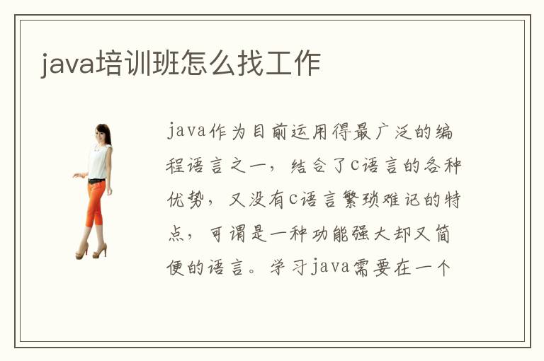 java作為目前運用得最廣泛的編程語言之一,結合了c語言的各種優(yōu)勢,又沒有c語言繁瑣難記的特點,可謂是一種功能強大卻又簡便的語言。學習java需要在一個有氛圍的環(huán)境中進行,畢竟互聯(lián)網(wǎng)專業(yè)的學習過程是枯燥無聊的,專業(yè)的java培訓機構可以滿足你的各種要求,專業(yè)輔導,幫助你完成高端java軟件工程師的夢想。那么,培訓班畢業(yè)后怎么找工作呢?