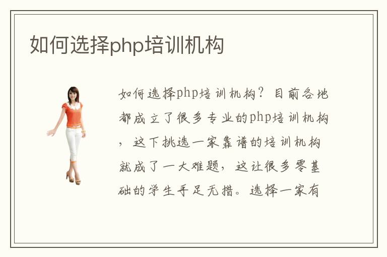 如何選擇php培訓(xùn)機(jī)構(gòu)?目前各地都成立了很多專業(yè)的php培訓(xùn)機(jī)構(gòu),這下挑選一家靠譜的培訓(xùn)機(jī)構(gòu)就成了一大難題,這讓很多零基礎(chǔ)的學(xué)生手足無措。選擇一家有實(shí)力的培訓(xùn)機(jī)構(gòu)需要從多方面考察,比如這家培訓(xùn)機(jī)構(gòu)的背景怎么樣?口碑好不好?教學(xué)團(tuán)隊(duì)師資力量怎么樣?等等。然而現(xiàn)在很多專業(yè)的互聯(lián)網(wǎng)培訓(xùn)機(jī)構(gòu)都開設(shè)了免費(fèi)試聽試學(xué)的課程,這就需要大家去實(shí)地考察了,這是最好的辦法。