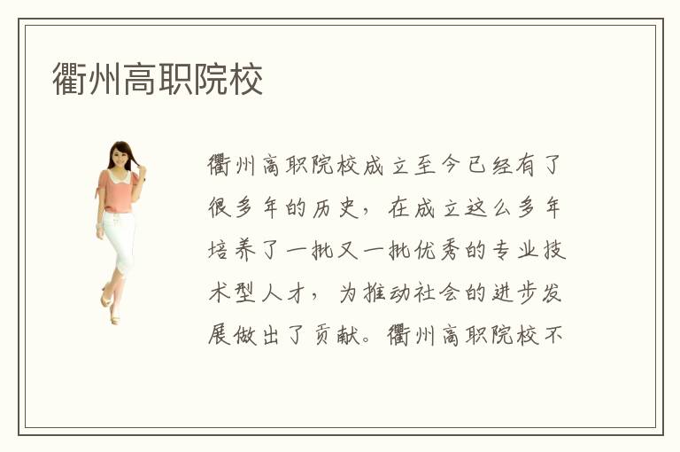 衢州高職院校成立至今已經(jīng)有了很多年的歷史,在成立這么多年培養(yǎng)了一批又一批優(yōu)秀的專(zhuān)業(yè)技術(shù)型人才,為推動(dòng)社會(huì)的進(jìn)步發(fā)展做出了貢獻(xiàn)。衢州高職院校不僅注重專(zhuān)業(yè)課程理論知識(shí)的教學(xué),更注重的是對(duì)專(zhuān)業(yè)技術(shù)的實(shí)踐項(xiàng)目課程培訓(xùn)。選擇衢州高職院校是一個(gè)很明智的選擇,然而還是有很多人并不放心衢州高職院校的教學(xué)質(zhì)量,大家不用擔(dān)心可以通過(guò)衢州高職院校試學(xué)課程進(jìn)行體驗(yàn)。